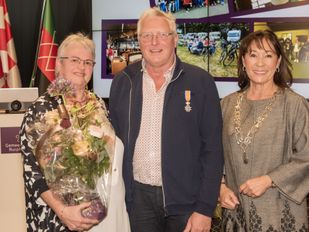 · Burgemeester Margo Mulder reikte hen de lintjes uit, beiden zijn benoemd tot Lid in de Orde van Oranje-Nassau.