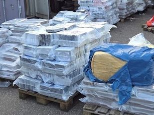 · Bij de vondst werd 1857 kilo hasj en 1021 kilo aan cocaïne gevonden. Ook hield de politie vier verdachten aan en werden voertuigen in beslag genomen.