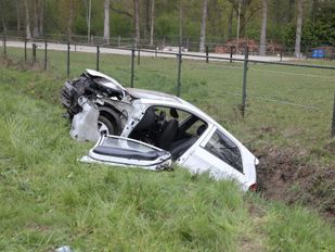 · De bestuurster is door ambulancepersoneel verzorgd. De borden raakten flink beschadigd. Hoe het ongeluk kon gebeuren is niet bekend.