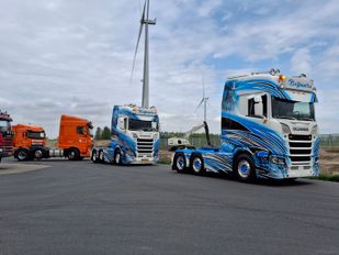 · In totaal reden er ruim zestig vrachtenwagens mee in de stoet. Elke chauffeur nam een cliënten mee in de cabine.
