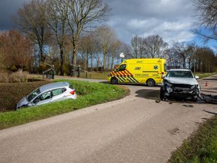 Forse schade na botsing tussen twee auto’s op snelweg