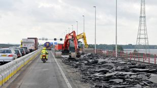 · De betonnen barriers worden dit weekend vervangen door stalen barriers, om de brugconstructie te ontlasten.