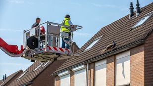 · Met behulp van een hoogwerker gingen een brandweerman en de man van de dierenambulance omhoog om de pauw te vangen.
