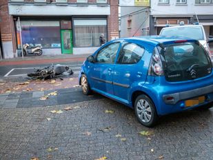 · De scooterrijder is door ambulancepersoneel nagekeken, maar hoefde niet naar het ziekenhuis. Over de oorzaak van het ongeluk is niets bekend.