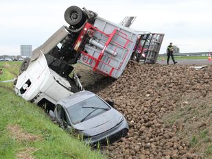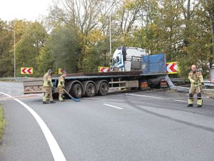· Door het ongeluk is de weg afgesloten en verkeer wordt bij afrit De Stok omgeleid. Hoe het ongeval kon geburen is niet bekend.