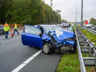 · Door de klap tegen van vangrail kwamen er brokstukken op de weg terecht. Het is niet bekend of er iemand naar het ziekenhuis moest.