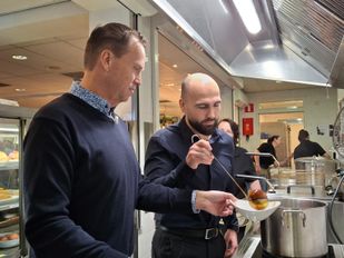 · De gehaktbal bestaat voor 60 procent uit normaal vlees en 40 procent uit een plantaardig product. In Bergen op Zoom werd hij gepresenteerd.