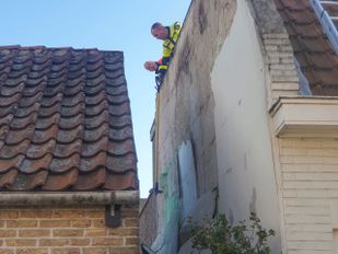 · De storm heeft zondag stucwerk van een woning in het Bergse Havenkwartier losgerukt. Er raakte niemand gewond door het neervallende…