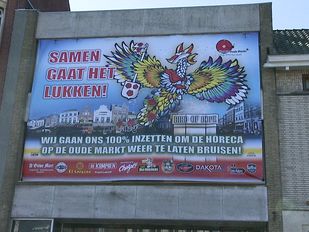 · Aan een leegstand pand op de Oude Markt in Roosendaal hangt sinds dinsdag een levensgroot spandoek. Met daarop in grote…
