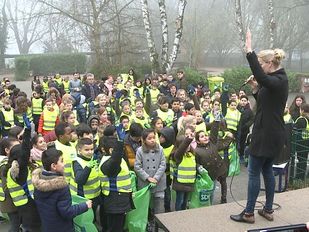 · Wethouder Patrick van der Velden en Saskia van Loon van School Oost hebben vrijdagochtend het startsein gegeven voor de Bergen…