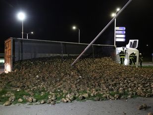 · Een vrachtwagen vol met suikerbieten is zondagavond gekanteld op een rotonde aan de N268 tussen Stampersgat en Dinteloord. Het ongeluk…