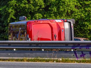 · Bij een ongeval is een bestelbusje zaterdagmiddag op z'n kant op de snelweg terecht gekomen.