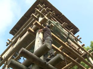 · Vorige zomer werd de uitkijktoren bij bezoekerscentrum Kraaijenberg vernield door brandstichting. Nu de renovatie van de publiekstrekker in volle gang…