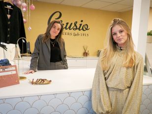 · De ijswinkel Crusio in Hoogerheide is tijdelijk omgetoverd tot een modezaak door moeder Mariska en dochter Tatun-Jamie van Tilburg.