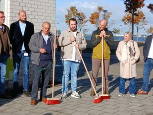· De tegel werd vrijdag symbolisch schoongeveegd door bewoners, Stadlander en wethouder, als teken van samenwerking en leefbaarheid.