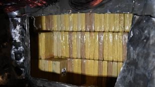 · Na een grondige inspectie troffen agenten in totaal 4882 pakketten cocaïne aan, die in apparatuur waren weggewerkt.