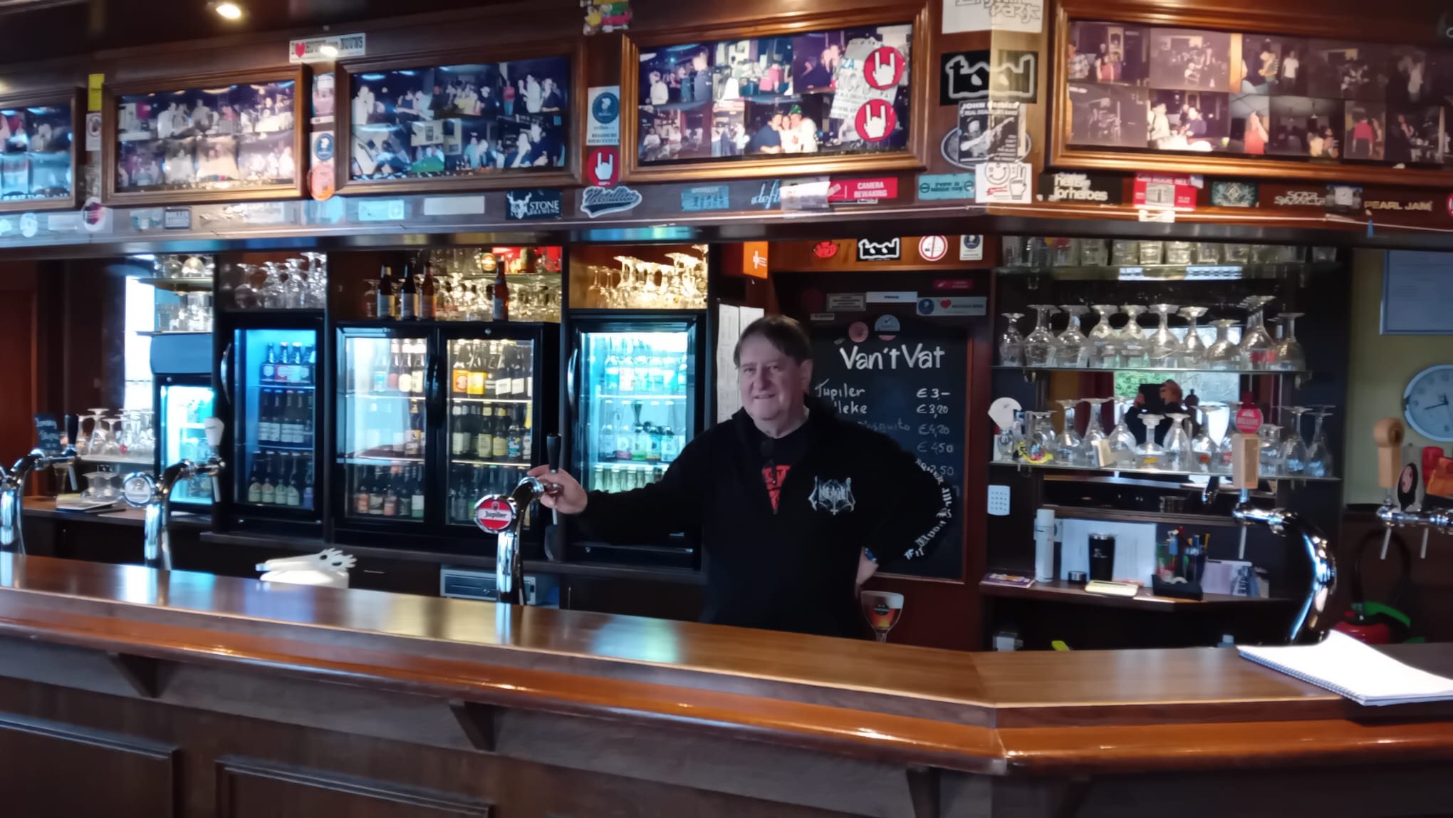 Boven de bar hangen talrijke foto’s van gezellige momenten met klanten uit het verleden. Ook hangen er oude toegangspassen die vroeger traditiegetrouw werden achtergelaten als de betreffende klant die niet meer nodig had. Dat was op het moment dat de leeftijd van achttien jaar werd bereikt. “Deze mensen zijn hier recent nog terug geweest. Zij kwamen hier na 25 jaar weer samen, dat was zo mooi om te zien”, vertelt Piet, wijzend op de toegangspassen van weleer.