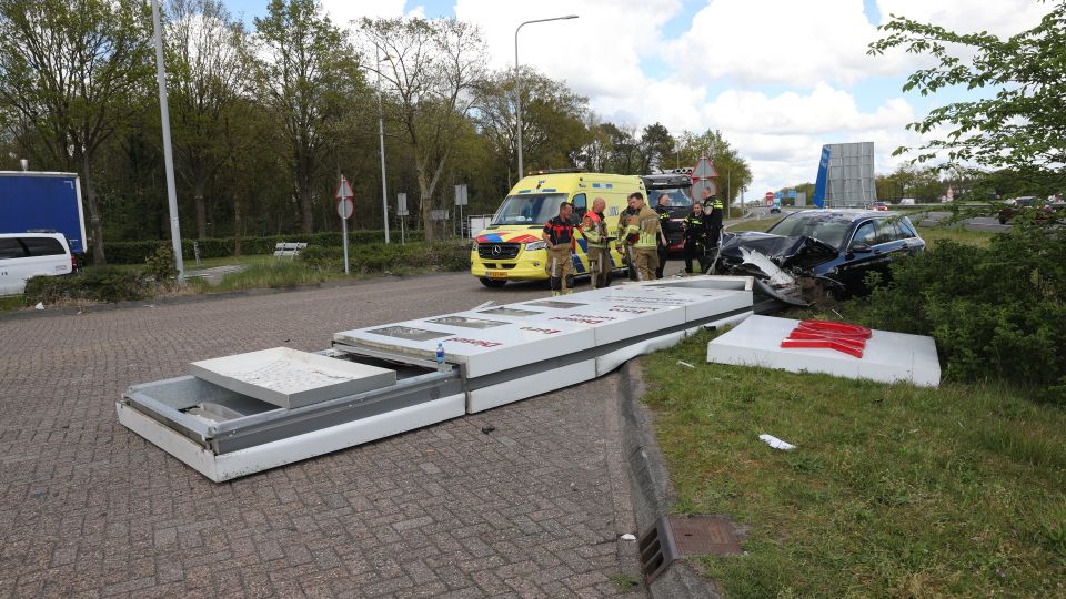 Naast het wegbewijzeringsbord reed de automobilist ook tegen een prijsbord van het tankstation aan. Vanwege het ongeluk kwam de ambulance ter plaatse. Ambulancepersoneel heeft de bestuurster verzorgd.