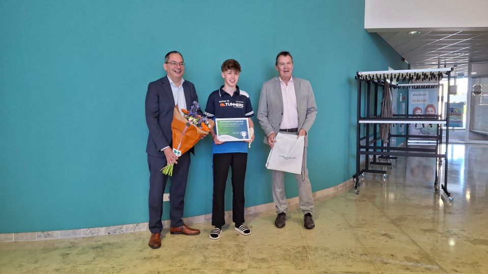 Pas toen hij naar de raadszaal werd begeleid, begon het kwartje te vallen bij Tom. Daar kreeg hij felicitaties van burgemeester Steven Adriaansen en wethouder Reinier Schuurbiers. “We zijn er als gemeente trots op dat we weer een Nederlands Kampioen in ons midden hebben”, zegt Adriaansen. Onder het genot van een drankje en een gebakje wordt zijn prestatie gevierd.