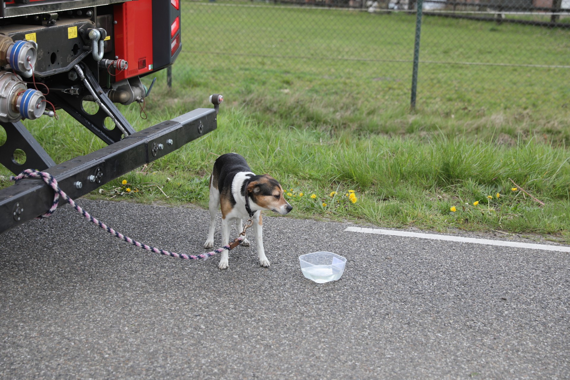 Op de achterbank van de auto zat ook een hond. De viervoeter is door de brandweer uit het voertuig gehaald.