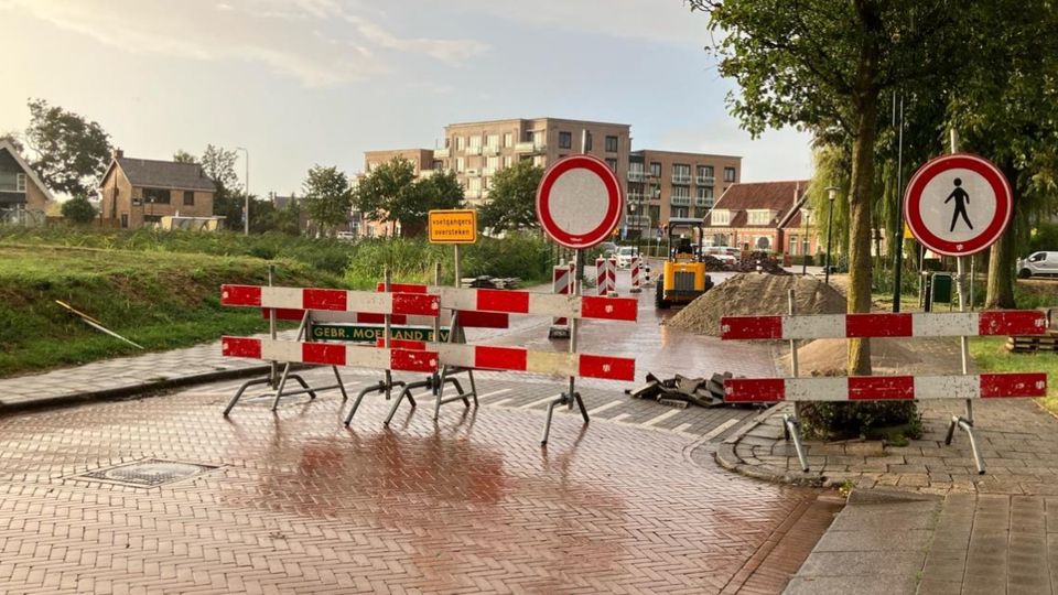 De wegafsluiting bij de Molenvlietsestraat in Tholen, in september. (Foto: VVD Tholen)