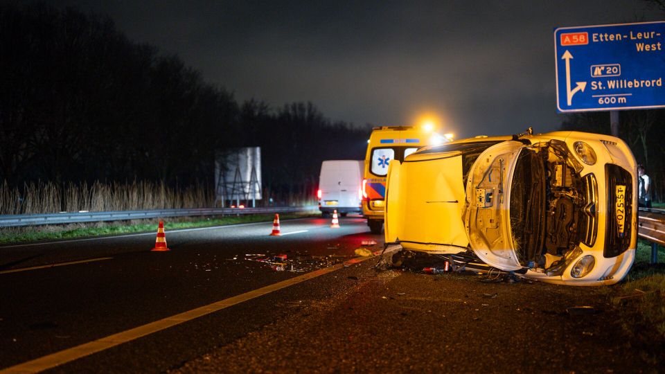 Dubbele crash zorgt voor opstoppingen op de A58 bij Sint Willebrord
