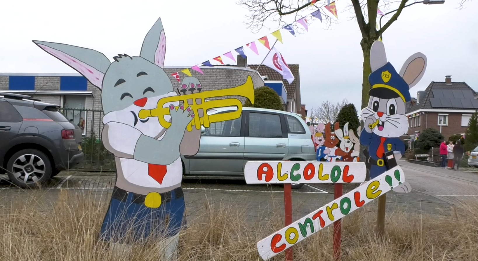 De konijnen in allerlei vormen en maten én met vrijwel allemaal een instrument in de hand lachen de automobilisten in de Van Oosterhoutstraat in Rijsbergen toe. De voorbijgangers in de straat in Aopelaand lopen of fietsen daarnaast onder honderden vlaggetjes door. Alles bij elkaar levert het een kleurrijk tafereel op, dat al twintig jaar rond carnaval te aanschouwen is in de straat die met carnaval de ‘Knijnestraat’ heet. “In 2006 zijn wij begonnen met het versieren van de staat”, legt Piet uit.