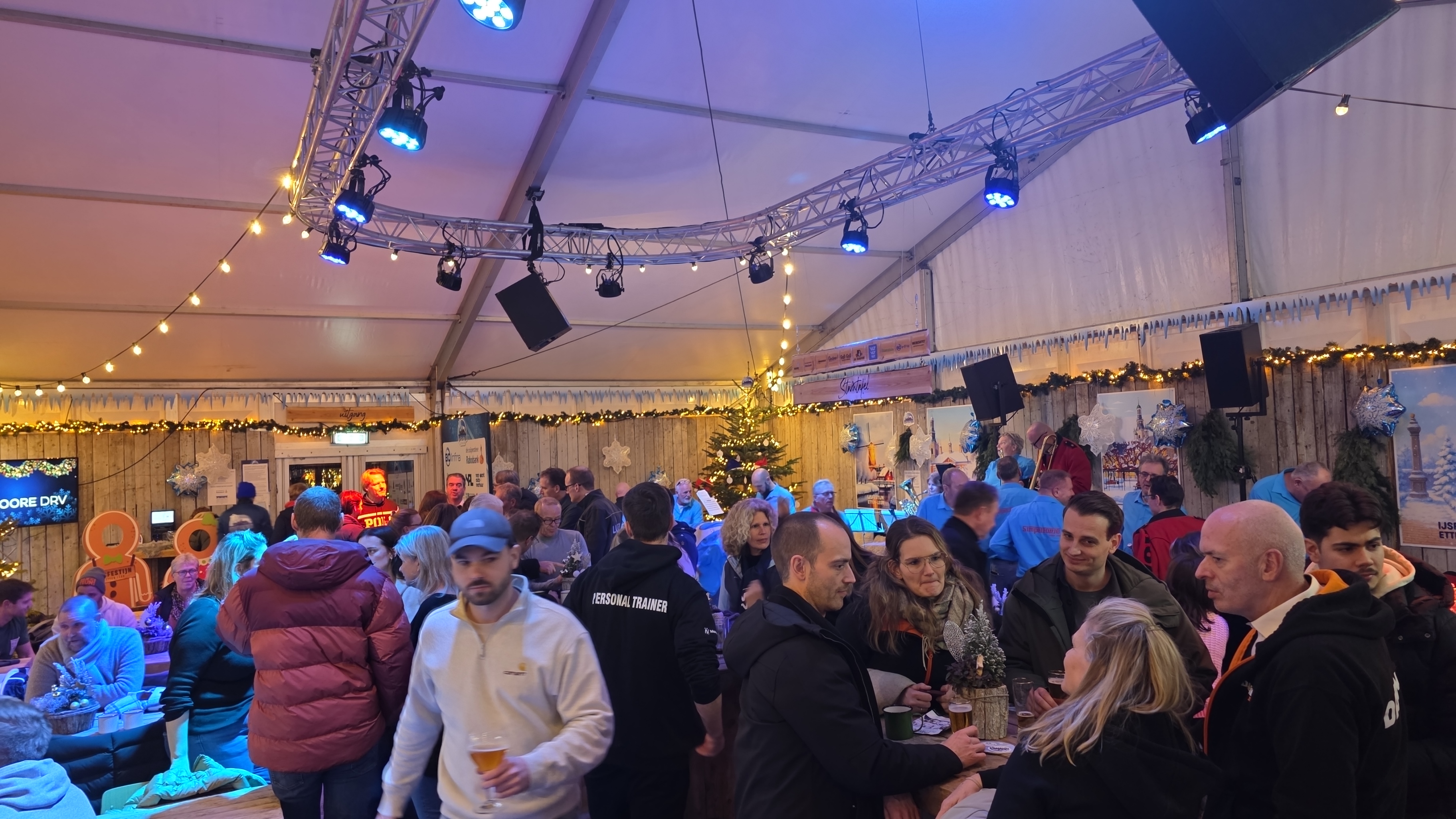 De afbouw gaat beginnen, maar niet zonder laatste nieuwjaarsreceptie. “Volgend jaar ziet er het weer hetzelfde uit”, aldus Van Doorn. De reacties waren enthousiast en uitdagingen werden nauwelijks gevoeld, op één na. “Ja, vandaag! Met de hoeveelheid sneeuw die is gevallen.” Hij vertelt dat het een grote tent is en dat er niet te veel sneeuw op het dak mag liggen.