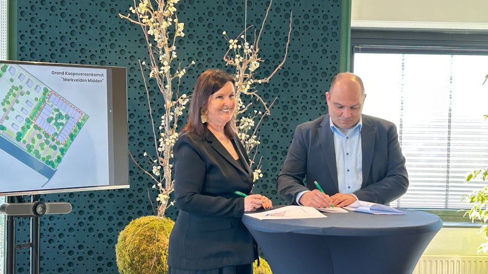 De realisatie van de nieuwe woonwijk Zevenbergen-Oost is weer een stapje verder ontwikkeld. De gemeente en Woonkwartier hebben de koopovereenkomst getekend voor de grond van Markvelden-Midden. Op deze plek moet een wooncomplex komen met 45 sociale- en middenhuur woningen.