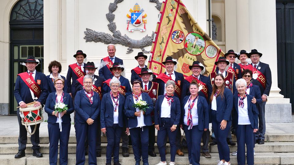 Het Gilde Sint Sebastiaan Oudenbosch heeft afgelopen zondag een Koninklijke erepenning uitgereikt gekregen (foto: gemeente Halderberge/Peter van Trijen)