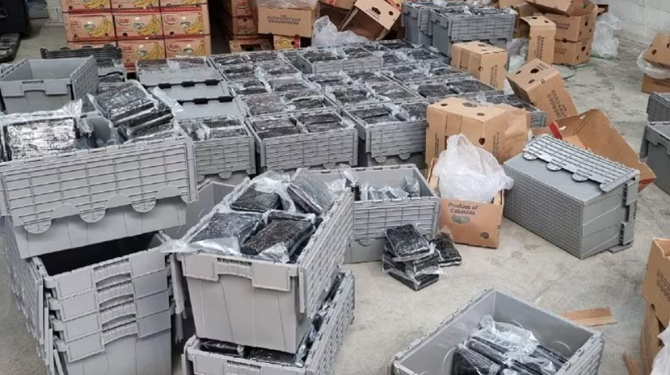 In de loods werd 3300 kilo cocaïne aangetroffen. (Foto: Politie)