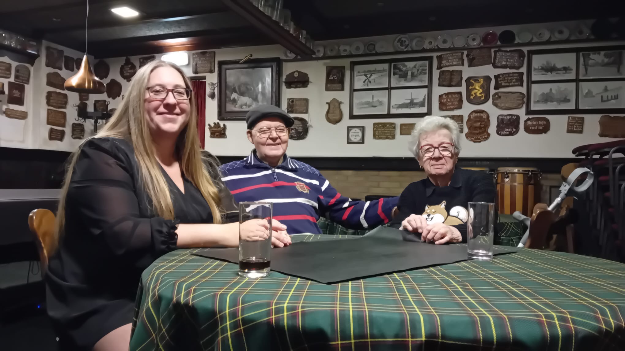 Ondertussen schuiven oom Gerard en tante Janne aan tafel. “Voor mij was dit ook altijd zo”, springt de 93-jarige Gerard in. Hij was vroeger werkzaam aan de grens met België en zijn geliefde Janne werkte in De Gouden Leeuw. “Voor mij was het dus makkelijk want na het werk reed ik meteen door naar de kroeg. Er was en is hier altijd iets te doen. Of het nu na de vroege of late dienst was. Dus ik heb eigenlijk heel mijn leven in de kroeg gezeten”, glimlacht Gerard terwijl Janne dit knikkend bevestigd. “Alle jeugd zit hier net als vroeger met elkaar te praten. Niet alleen met elkaar maar met alle generaties. De plattelandsjeugd weet ook niet beter. Ze leren dit van de oudere klanten”, klinkt het van drie kanten terwijl Annick de kuiltjes in haar wangen lacht.
