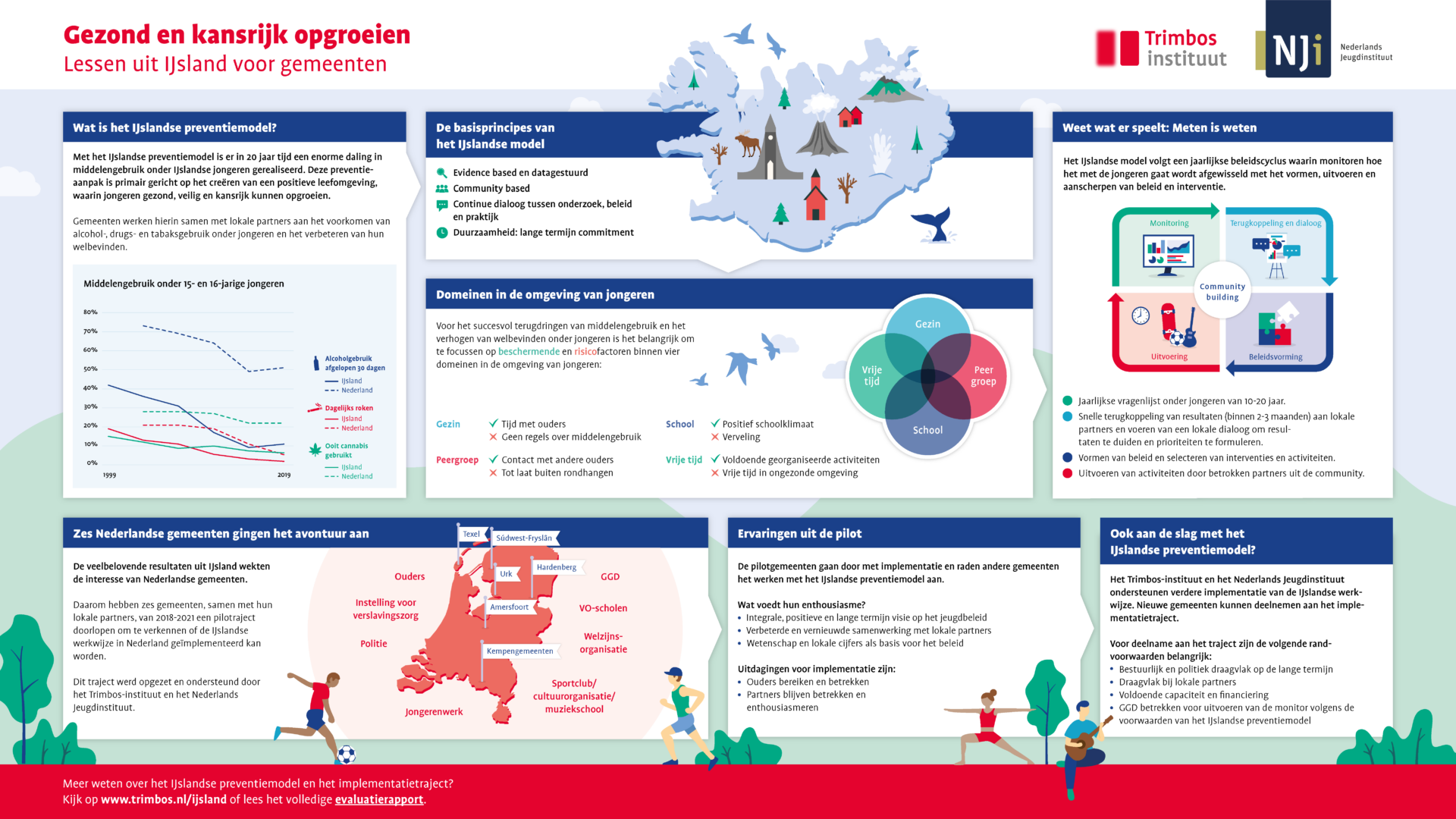 Het IJslande preventiemodel slaat een burg in de aanpak om jongeren te informeren over de gevolgen van drank en drugs. Verschillende partijen die met jongeren te maken hebben zoals scholen, verenigingen en ouders werken samen om de boodschap over te brengen. “In de maatschappij is het cool geworden om te drinken of te roken”, zegt De Jager. “Ik wil niet oordelen, want ze zijn vrij in wat ze doen, maar als je het gaat normaliseren heb je het risico dat het uit de hand loopt.”