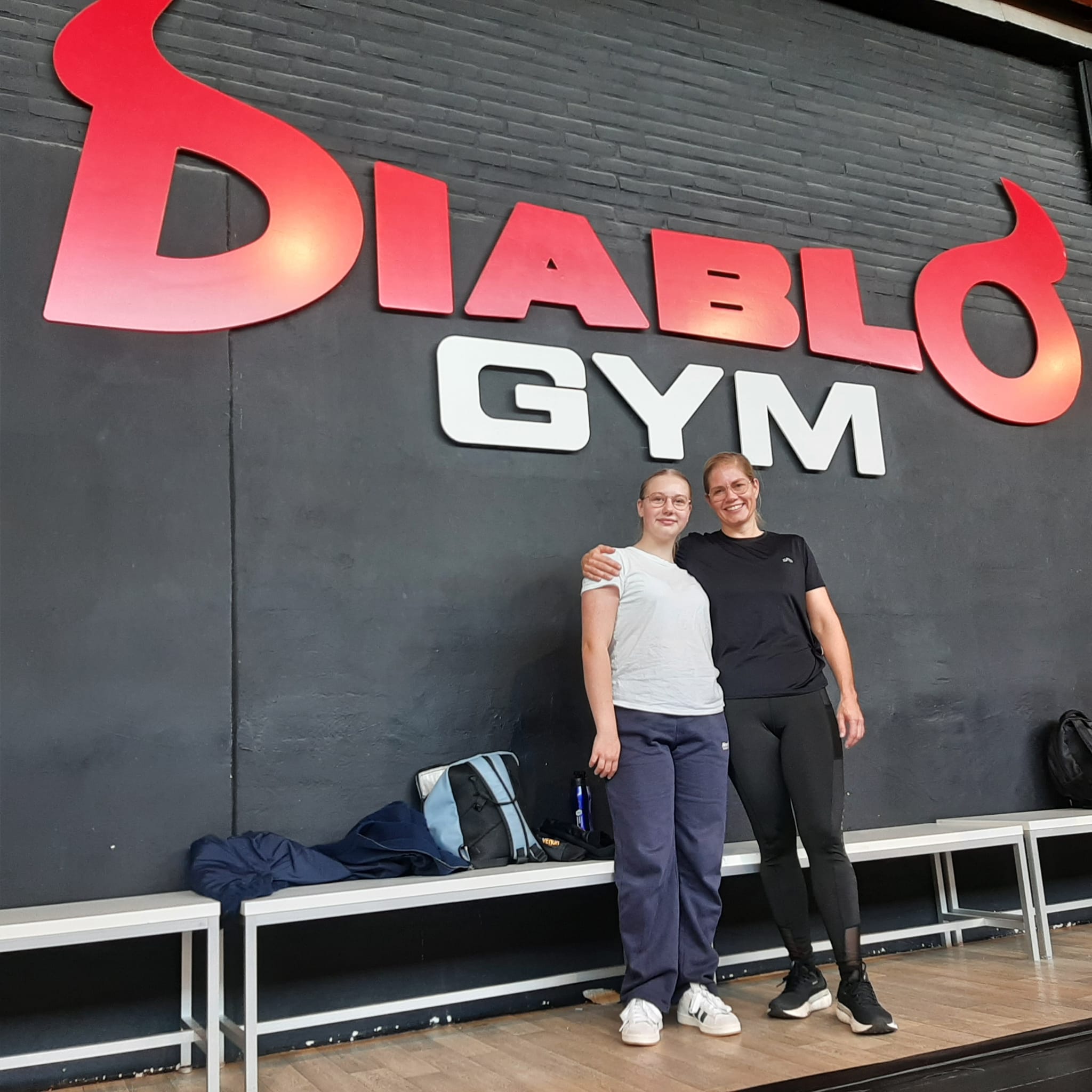 Op de mat staan ook Micaela (14) en Ester (46) Beerens fanatiek te oefenen. Ester traint vaker bij Diablo Gym en doet aan cardio en ladies boksen. Toen zij hoorde van de gratis zelfverdedigingslessen die werden aangeboden twijfelde ze geen moment en gaf zich samen met haar dochter op. “Het is niet alleen nuttig maar ook zo leuk om samen te sporten”, verzekerd Ester met een gekleurd gezicht van de inspanning.