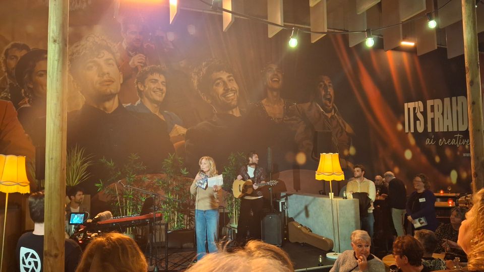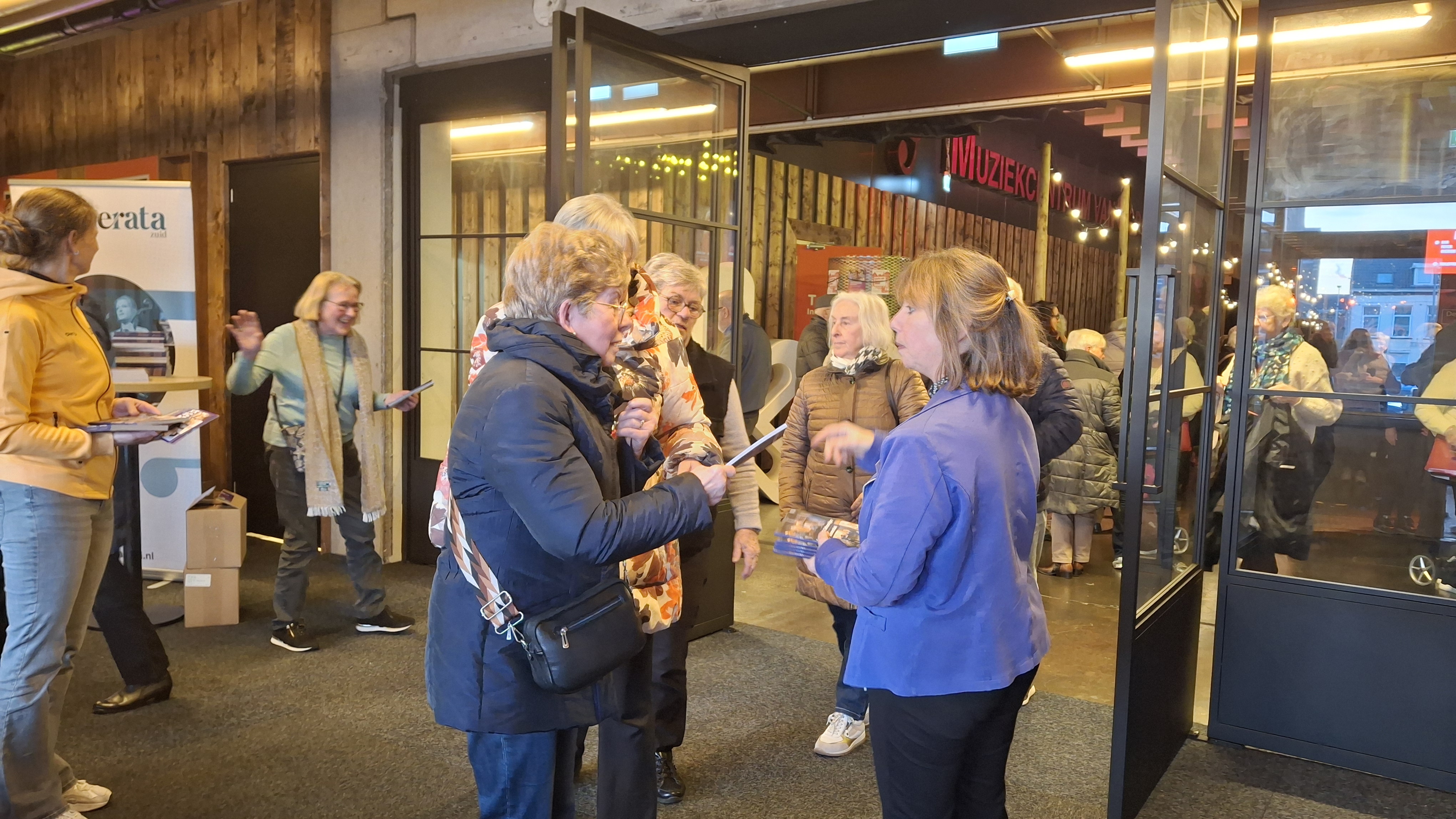 Na de show ‘Grijs gedraaid’ was het de eer aan Angela Groothuizen om de Beweeg- en Cultuurwijzer aan het grote publiek te presenteren. “Lieve mensen kom van die bank af, er is zoveel te doen hier in Roosendaal”, zegt ze voor een goed gevulde zaal. Bij de uitgang staan Smits en haar collega’s om iedereen persoonlijk een boekje uit te reiken.