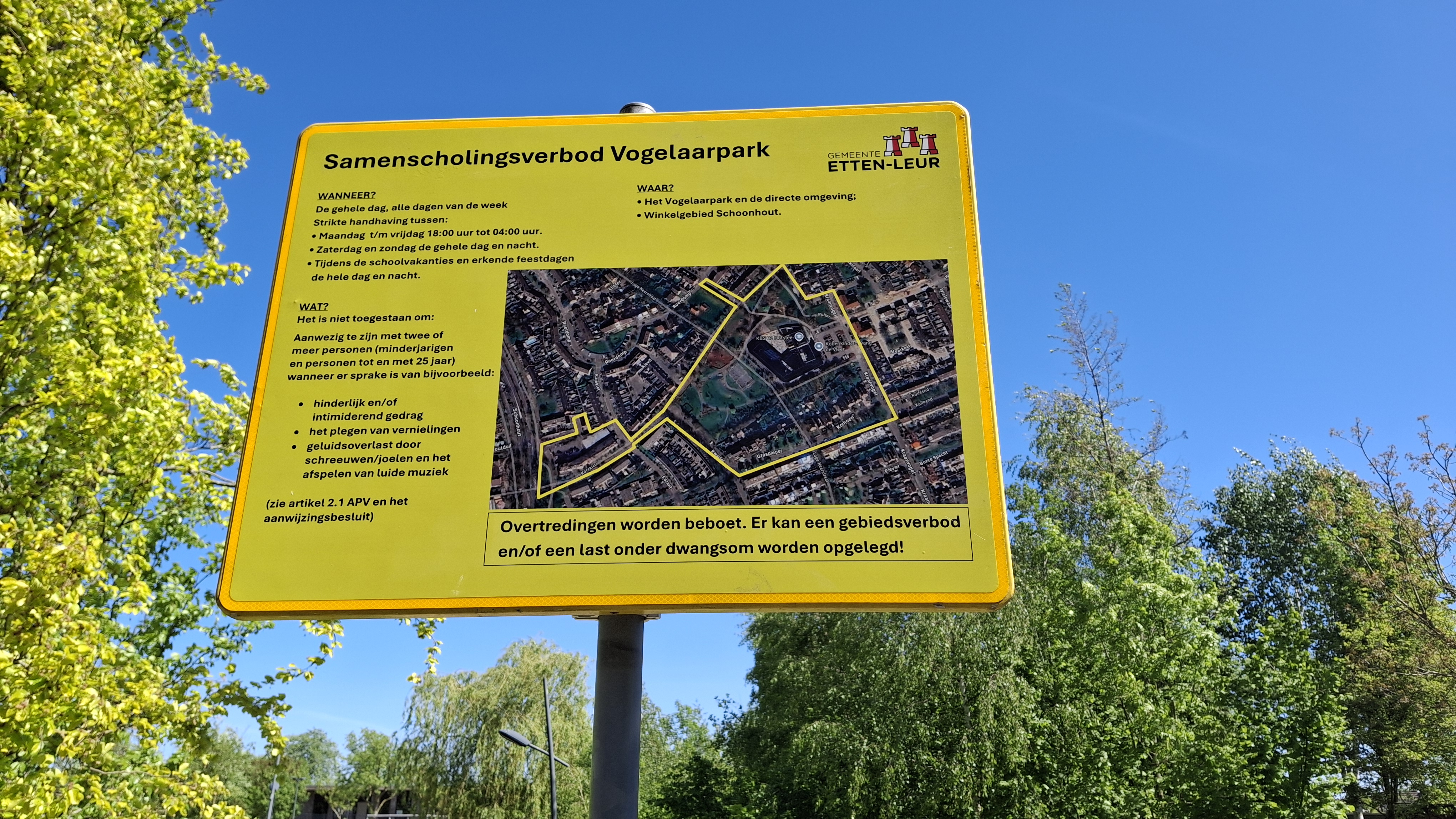 Burgemeester Marina Starmans van Etten-Leur stelt opnieuw een samenscholingsverbod in voor het Vogelaarpark. Het vorige verbod stopte op 1 maart. Kort daarna volgden opnieuw meldingen van overlast vanuit de buurt. Daarom stelt de burgemeester het verbod opnieuw in om te rust terug te brengen.