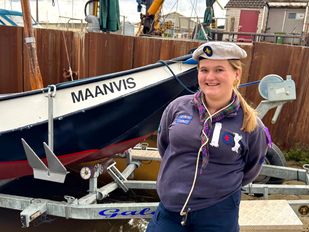 · De meiden van de Karel Doorman lieten zaterdag hun nieuwe lelievlet, de Maanvis ter water. De boot is officieel gedoopt door de burgemeester.