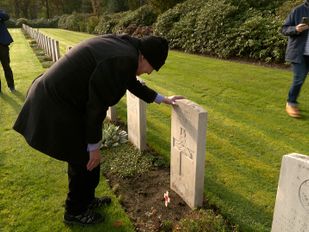 · Bill Harvey, de zoon van een in 1944 gesneuvelde Schotse militair, is inmiddels bijna 80 maar blijft zijn vaders graf bezoeken zo lang het kan.