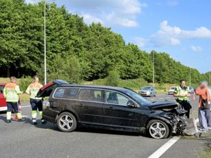 · De schade aan het voertuig is flink maar gewonden vielen er niet.
