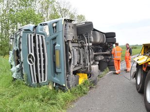 · De verbindingsweg is naar verwachting tot 20.00 uur afgesloten, omdat de lading eerst uit de vrachtwagen gehaald moet worden.