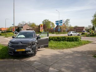 · Twee auto’s reden tegen elkaar op de kruising van de Plantagebaan en de Westelaarsestraat.