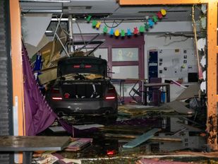 · De auto is door een hekwerk geramd, vervolgens door een pui van het pand gereden en in het lokaal tot stilstand gekomen.
