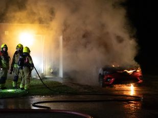 · De brandweer heeft het vuur snel geblust, maar de voorkant van de auto raakte zwaar beschadigd.