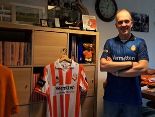 · Mike Nefs heeft in zijn huis een grote verzameling van zijn favoriete club RBC. Een aanzienlijk deel van de woonkamer is oranje gekleurd.