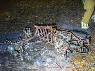 · Bij aankomst van de brandweer stond de scooter al in lichterlaaie.