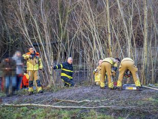· Brandweermensen wisten het beest met behulp van een lier uit de sloot te krijgen.