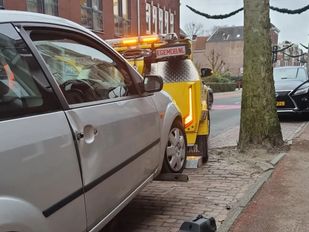 · De brandweer kwam met twee voertuigen naar de Ettingstraat om de man te bevrijden. Het slachtoffer is naar het ziekenhuis gebracht.