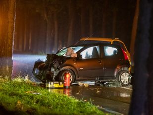 · Waarschijnlijk is de vrouw vanwege het slechte weer van de weg geraakt. Daarna is ze tegen de boom aangereden.