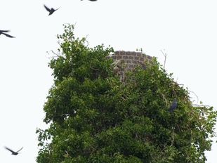 · Maandag verscheen er een grote kraan op het terrein van de voormalig melkfabriek. Even leek het dus alsof de complete schoorsteen tegen de vlakte zou gaan.