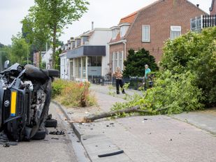· De auto kwam tegen een boom terecht, die door de klap afbrak. Ambulancepersoneel heeft de bestuurder ter plaatse nagekeken en behandeld, hij hoefde niet naar het ziekenhuis.